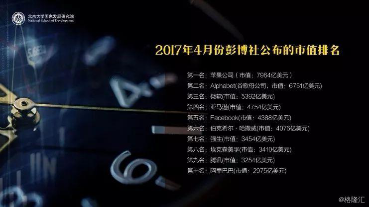 今天,人们开始追求个体满足感和过程体验感,这为中国公司带来了巨大机会。在2017年4月彭博社公布的全球企业市值排名中,前十位有两家中国公司,中国公司的影响日益变大(最近的新闻是腾讯市值超过五千亿美元)。